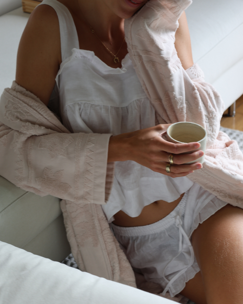 This question makes me realise it’s hard to pinpoint when I really started my “wellness journey.” To paint a picture of my growing up, my family is from England and my Mum cooked dinner with whole foods every night but we still enjoyed a block of chocolate or strawberries with heavy cream for dessert, I didn’t try soda until I was 13, I started playing sports as soon as I was old enough, my Dad ran marathons and kickboxed, and I noticed my Mum always making time for a morning and night skincare routine with a cup of tea. Food was always celebrated as a source of joy and energy, and exercise was a way to spend time with friends and feel fulfilled in the day. It wasn’t until I went to the University of North Carolina Chapel Hill that I felt lost without a sport or coach to tell me what to do, so I took a class to learn how to teach group fitness and auditioned to teach Pilates at the school gym. I would spend time thinking through creative flows for the Pilates classes and then take some of those moves to add to my own workouts at the gym. After my freshman year, I transferred to the University of Miami and was quickly exposed to a packed social calendar. As much as I loved the lifestyle that came with being 20 in Miami, I had to carve out time to slow down and recharge. That’s when I started waking up early enough to enjoy a slow coffee in the morning, exploring new face creams, and soon a wellness routine with slow moments and intentional movement became non-negotiable.