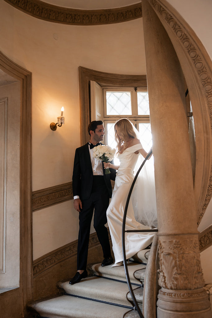 My mum, sister & two best friends flew in from Australia for the wedding. We started the day with a beautiful breakfast & then spent all day getting ready. It was really special. The beautiful Six Senses in Rome had the most stunning marble staircase, it felt so surreal to be there & the robes complemented perfectly! I wore the Kiralee Satin Slip Dress with the Helena Long Lace Robe & the girls wore the Olivia Luxury Satin Robes.
