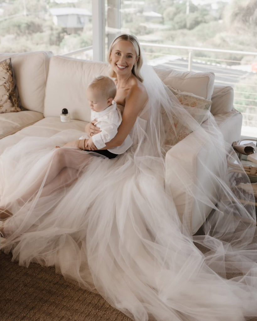 I am a primary school teacher currently on maternity leave after having my first baby boy, Hugo with my now husband, Jonny. Jonny and I have been together for 4 years and from the get go, we always knew we wanted to get married. We got engaged on our first holiday as a family of three in Port Douglas when Hugo was 4 months old. We then had 9 months to plan and organise a wedding whilst juggling Hugo and our busy lives as Mum and Dad. Our approach to planning the wedding was To make quick decisions and go with the flow as much as possible due to the time constraints that Hugo provided. Looking back on the day we are so glad that we Had a small intimate ceremony with our close family and friends followed by a larger celebration with our extended friends and family.