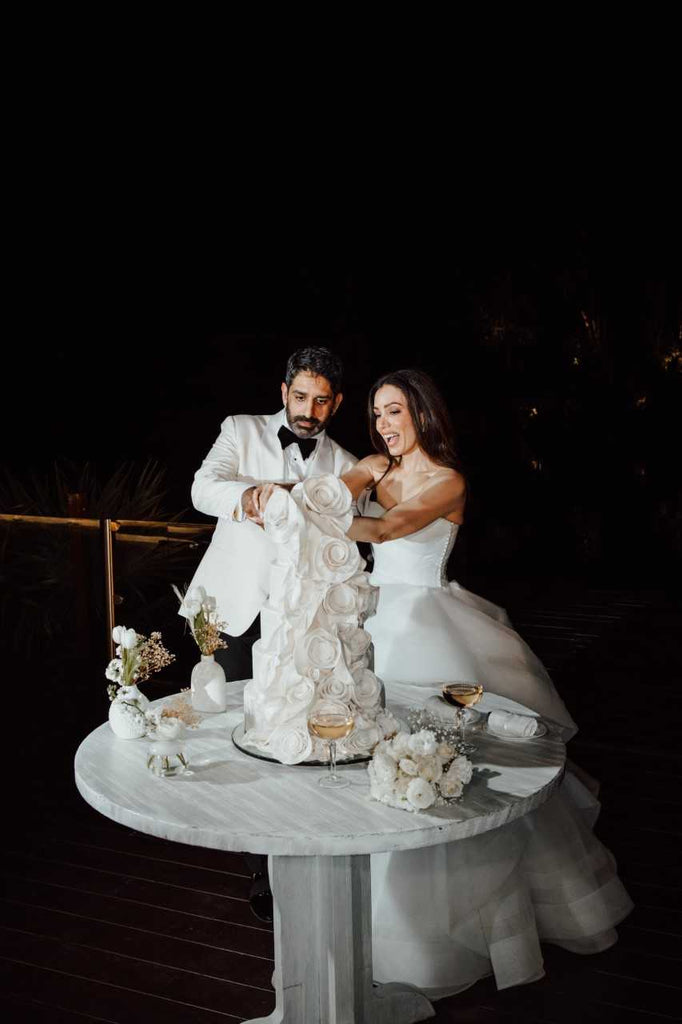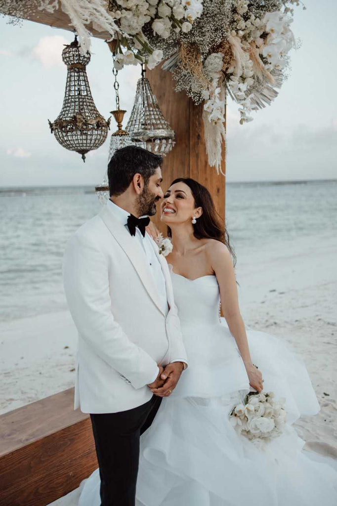 Maryam, a Persian-American digital content creator from Orange County, CA, left the corporate world to pursue her passion for creativity. She enjoys traveling with her husband, indulging in wine tasting, practicing pilates, and starting her day with coffee. Their destination wedding in Mayakoba was a blend of timeless elegance and glamour, reflecting their personalities, with the Banyan Tree Hotel providing a dreamlike backdrop. The most unexpected moment was their choreographed first dance, adding joy to the celebration. Reflecting on the day fills Maryam with gratitude and advises new brides to embrace every moment. She cherished her Homebodii moment wearing the Kassiah Long Robe and Sian Slip, finding them romantic, feminine, and comfortable.