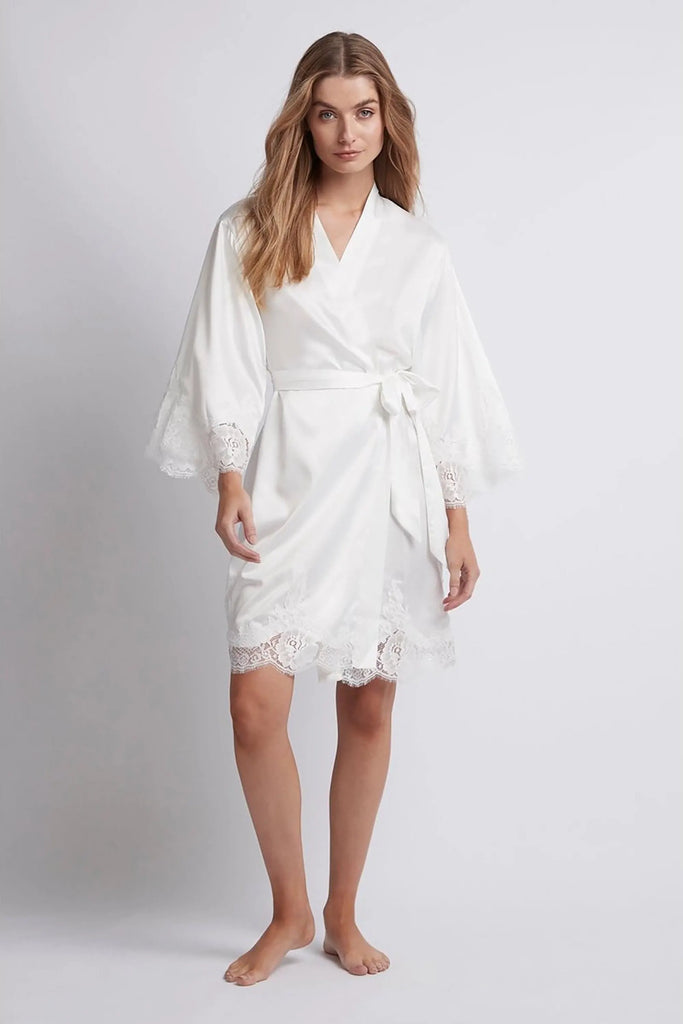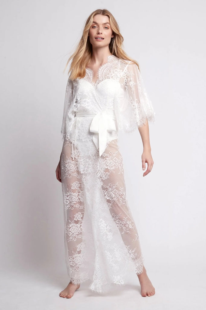 From beach babe to lounging in style, this is for the girl who daydreams in lace and love. Our Madeline Long Lace Robe features a delicate design of lacey blooms, set against a soft ivory fabric. Complete with a detachable satin belt, this robe will take her from the beach to the bedroom in utter style. Our Kassiah Long Lace Robe features an even softer, Australian-designed floral lace pattern, complete with lace trims and a matte satin sash.