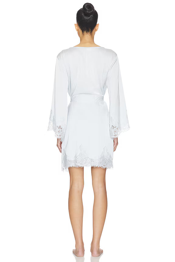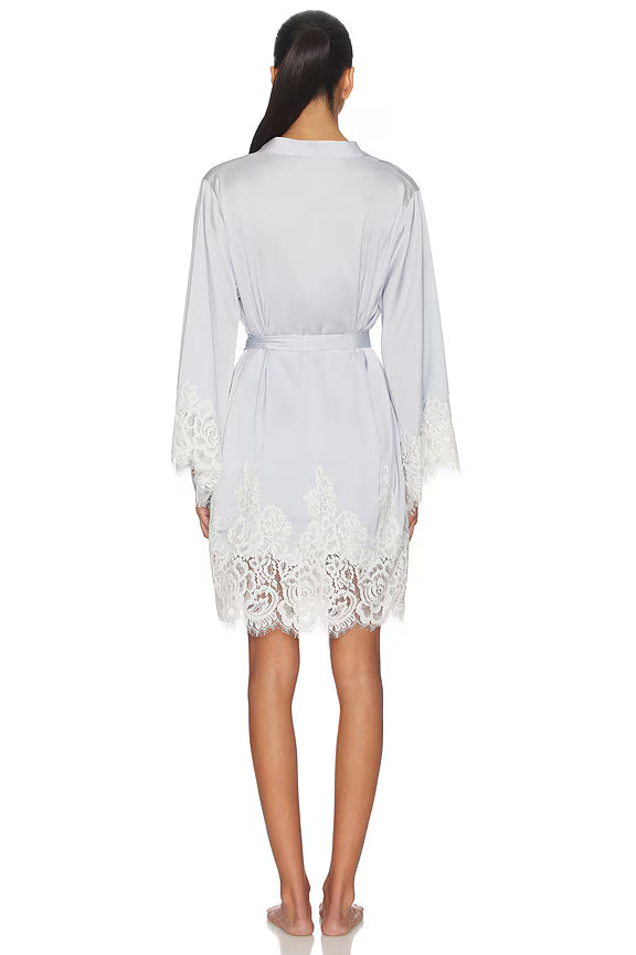 Our Bridal Robes collection features everything from simple elegance, to fancy florals, to gorgeous intricate lace detailing, to suit every bride’s unique special day! Our elegant silky mid-length robes, with gorgeous lace trim come in the classic bridal ivory, as well as a selection of pastels, including blush, eggshell blue, navy, and black. Featuring a luxurious satine material, these robes feel and look amazing in your photos! Our eggshell blue Olivia Robe in particular will give your special morning a serene and calm aesthetic, perfect for a spring or summer wedding! The beautiful lace trim on these classic robes makes for the perfect photo opportunity for champagne toasts, or a special moment with your girls!