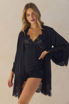 Delicate lace trim graces the sleeves and hem, adding an element of timeless romance, while the self-tie waist allows for a flattering, adjustable fit. Whether you're starting your morning routine or unwinding in the evening, this robe is the perfect blend of sophistication and ease.
