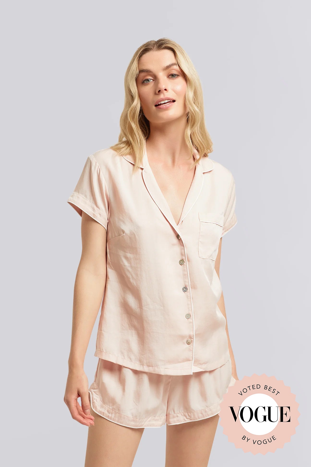 Eva Kids Short Tencel™ Pyjama Set - Blush with White Piping