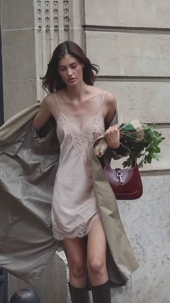 Indulge in the elegance of our Sian Lace Slip, crafted from luxurious silky blush satin with a touch of stretch. The bias cut design hugs your curves beautifully, while adjustable spaghetti straps and a v-neckline, adorned with exquisite lace appliques, add sophistication.