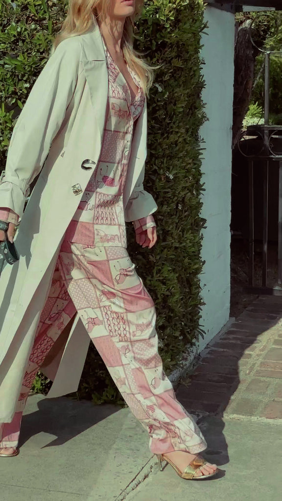 For the dreamers, riders, and lovers of all things equine, our exclusive equestrian print pyjamas are a tribute to timeless elegance and horse-loving hearts. Thoughtfully hand-drawn and designed in-house, this print is unique to Homebodii and woven with meaning. Featuring detailed illustrations of bridled horses in soft blush and rose tones, each panel is framed with bridle-inspired motifs and vintage patterns.
