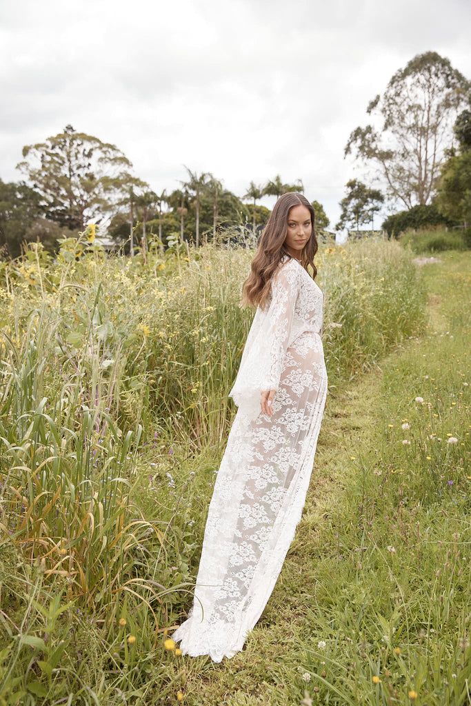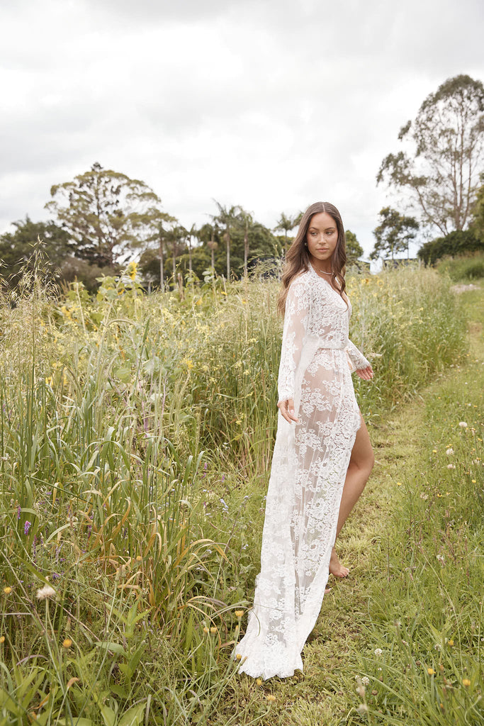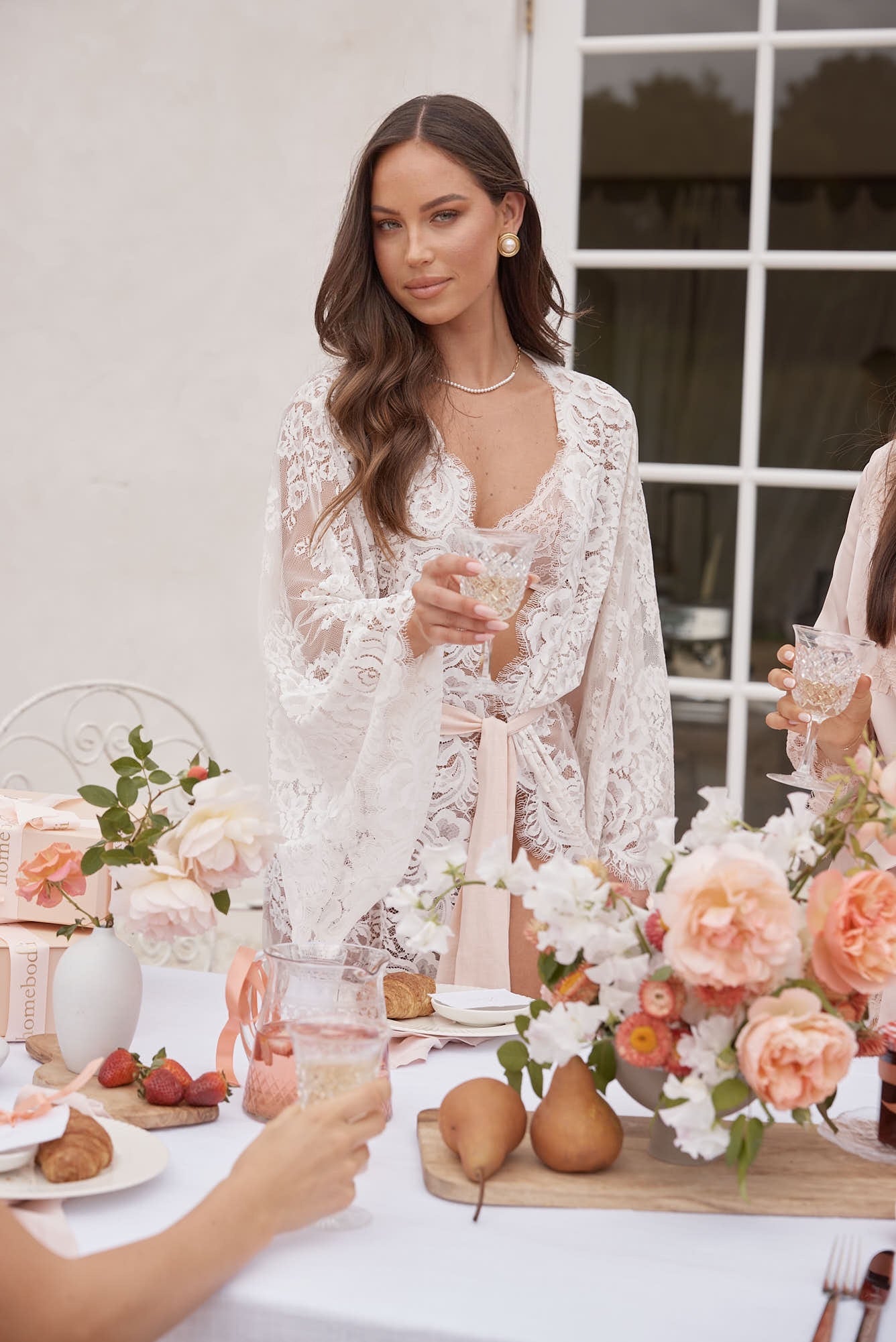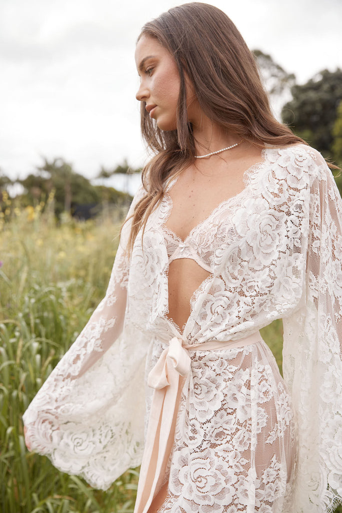 Introducing the Versailles Lace Robe by Homebodii an exquisite expression of luxury, artistry, and timeless elegance. Designed and crafted in Australia, this masterpiece embodies the essence of refined femininity and modern sophistication.
