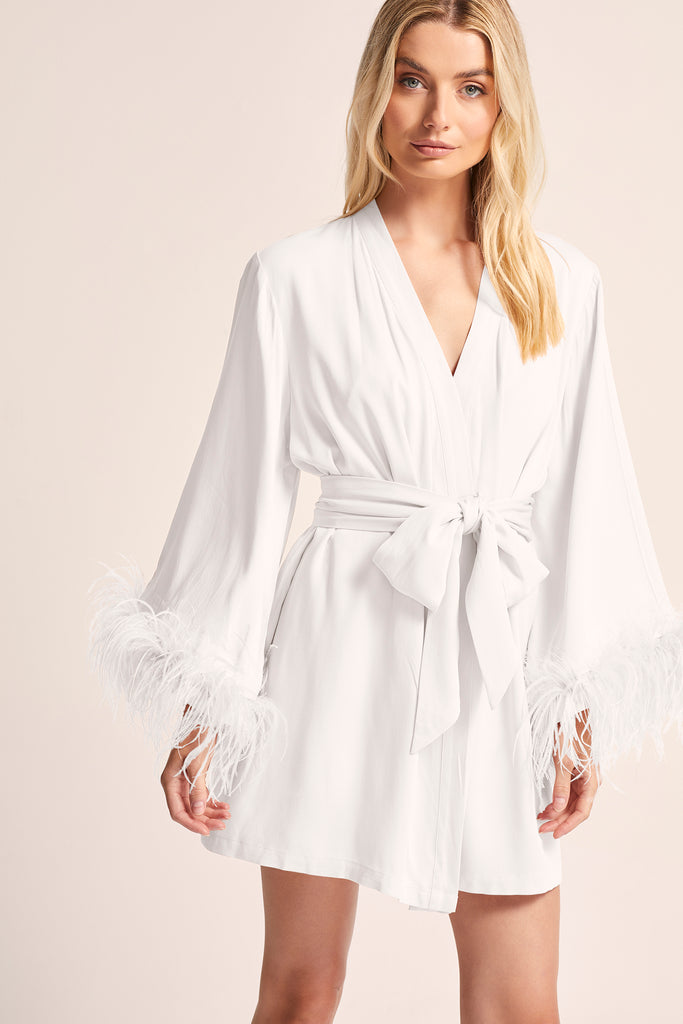 Immerse yourself in the ultimate bridal luxury with our feather-trimmed robe. The delicate feathers add an air of sophistication and elegance, making you feel truly special on your big day. Whether you're getting ready for your pre-wedding festivities or seeking a moment of indulgence, this kimono robe is a symbol of femininity and timeless style.