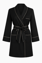 Robe with Matching Hair Scrunchie - Black with Dusty Rose Piping *Final Sale*