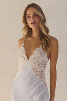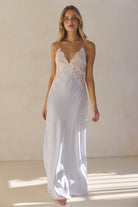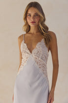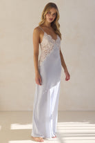 Peyton Long Lace Slip Dress - Eggshell Blue