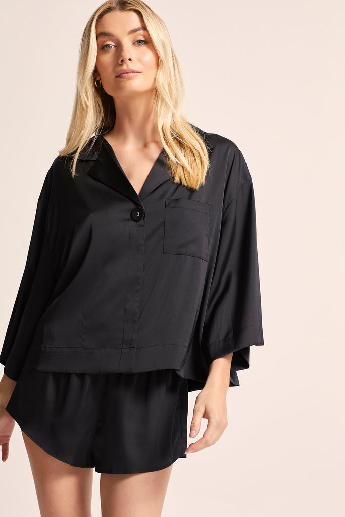 The Rylee shirt features an oversized silhouette, exuding a sense of modernity and contemporary flair. With its button-down front, it adds a touch of elegance and versatility to the overall design. The removable waist tie enhances the set's adaptability, allowing you to customize the fit and achieve the perfect amount of definition to suit your preference.