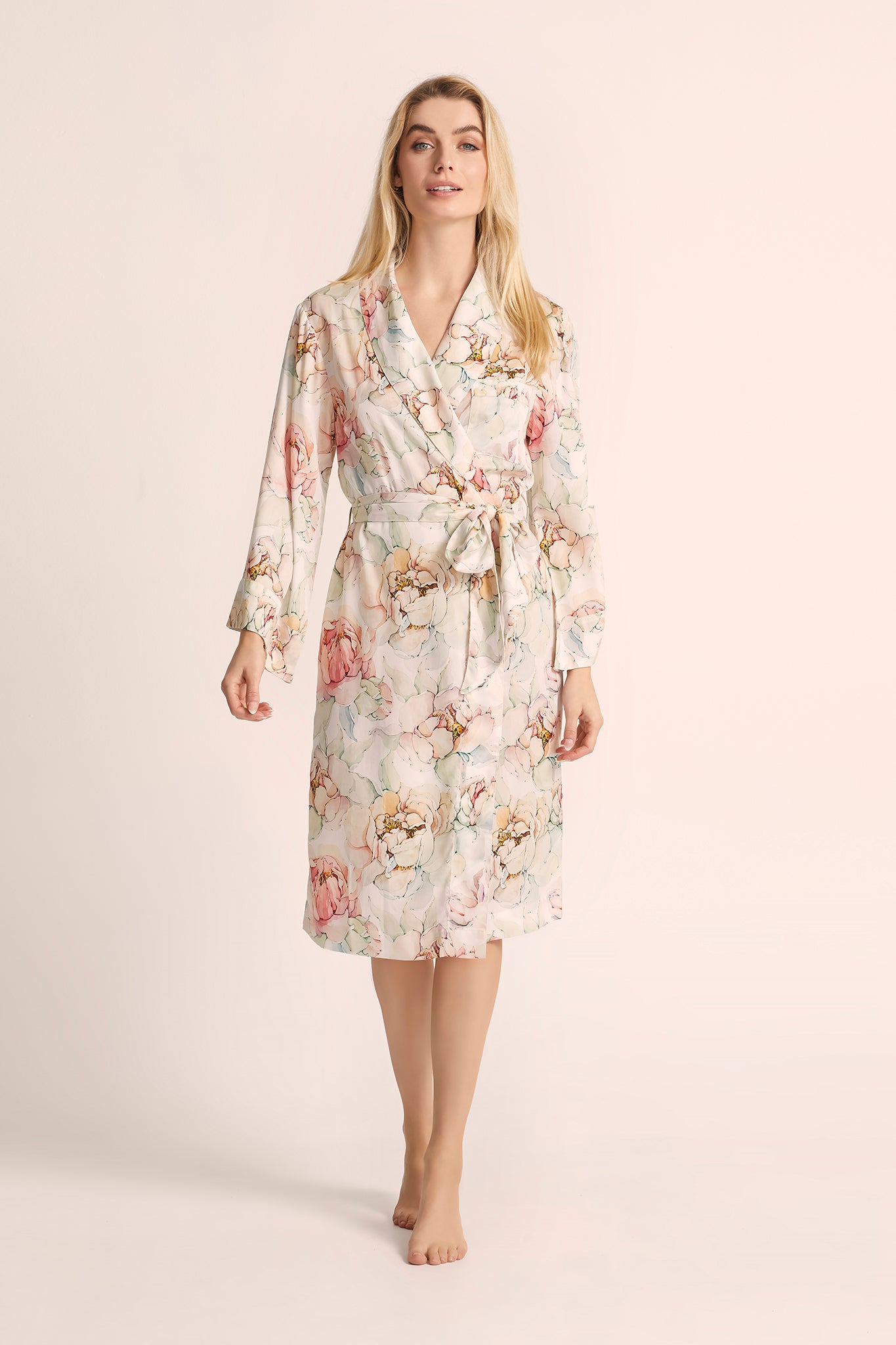 Peony Print in Watercolor: Immerse yourself in the timeless beauty of peony blooms brought to life with delicate watercolor hues. The Peony Print adds an artistic touch to your robe, creating a captivating visual masterpiece that's as enchanting as it is comfortable.