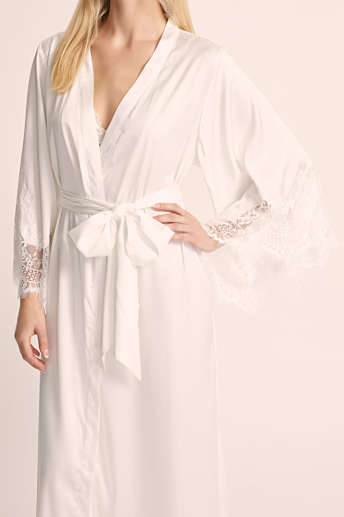 Elevate your everyday rituals and transform them into moments of splendor with the Margo Satin Robe. Discover the allure of soft matte satin, delicate lace, and timeless elegance in one extraordinary garment. Order yours today and experience luxury like never before.