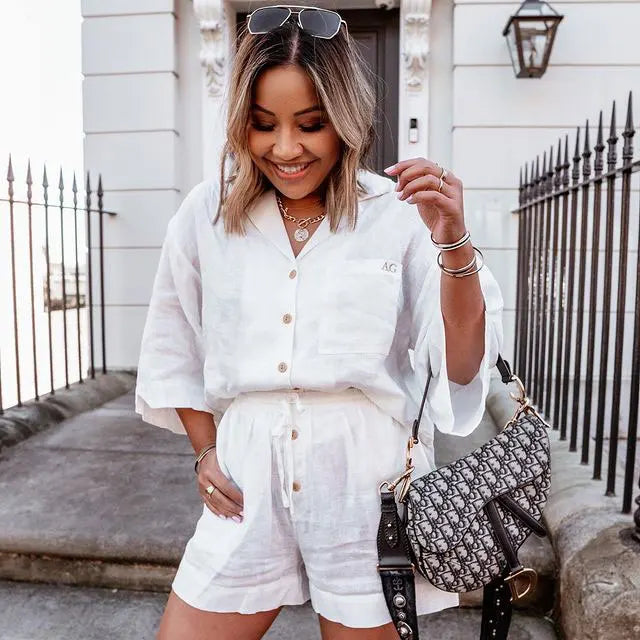 A matching linen button-down shirt with shorts like our Riviera Linen Pyjama Set is an effortlessly stylish and versatile duo you’ll feel and look great in. This duo is such an ideal WFH wardrobe staple you’ll probably want one in every colour.