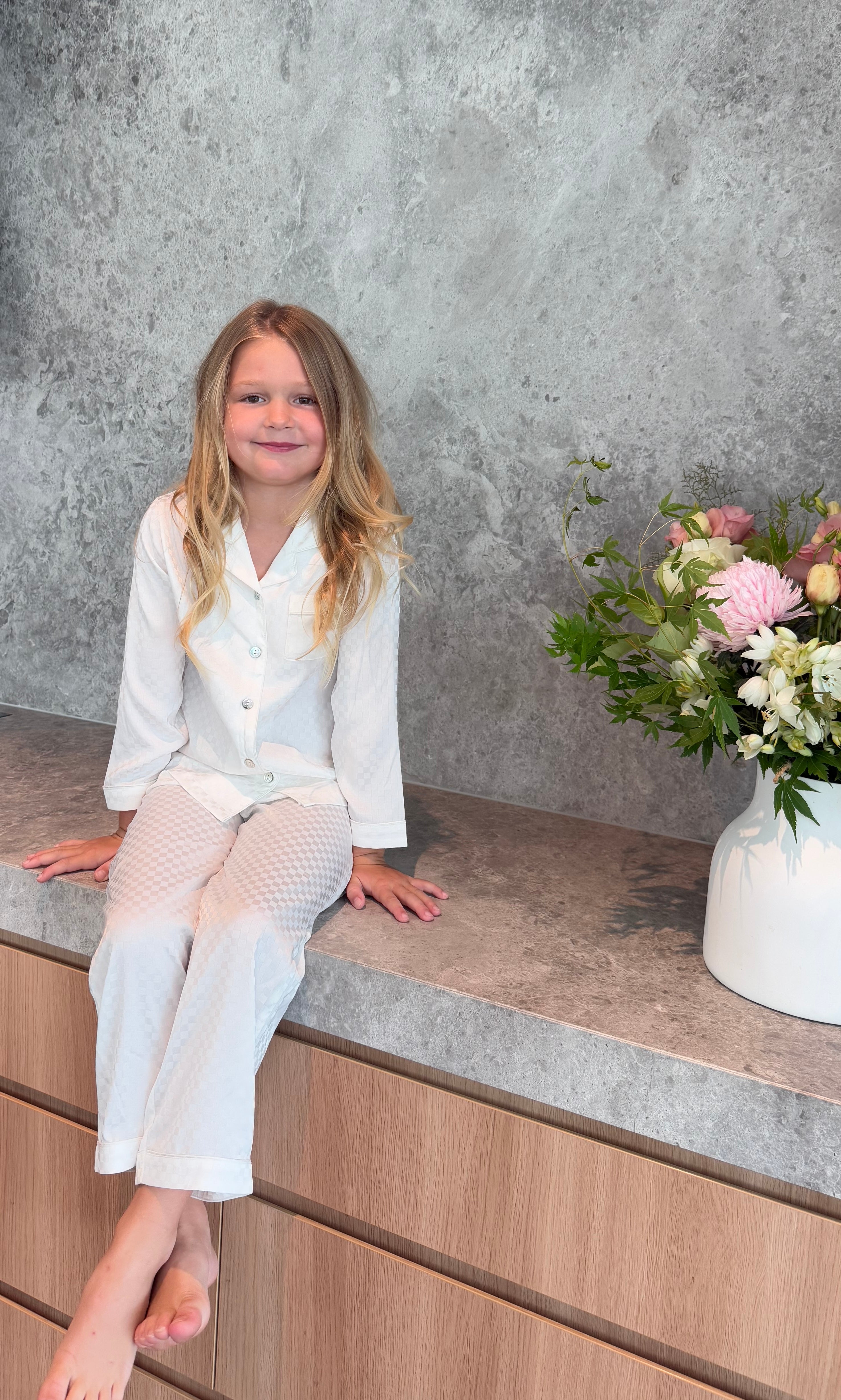 Introducing the all-new Gigi Checked Satin Kids Pyjama Set from Homebodii – where luxury meets sustainability in the most delightful way. Designed with the same meticulous attention to detail as our women's collection, this set lets your little ones match in style with our beloved Gigi range.