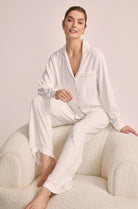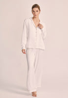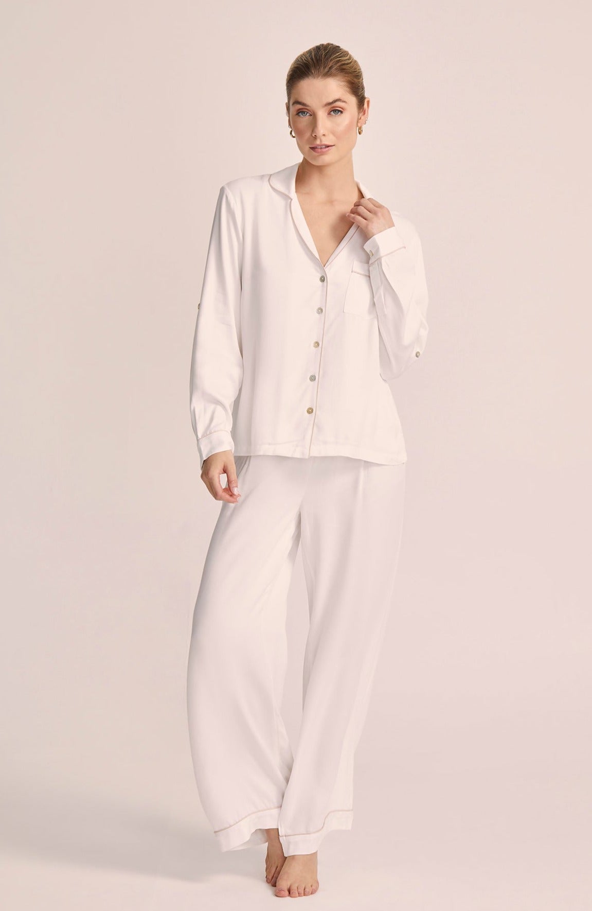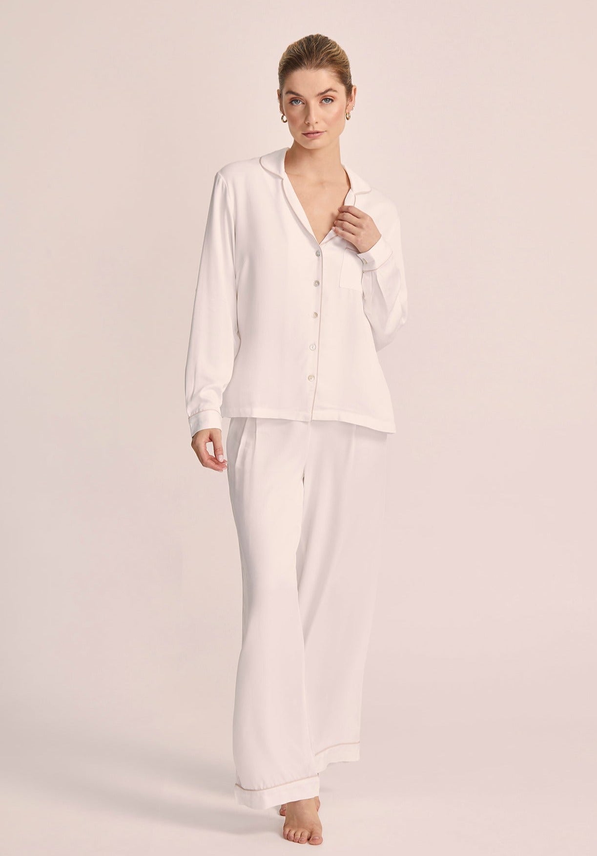 Eva Lounge Tencel™ Pyjama Set - White with Blush Piping