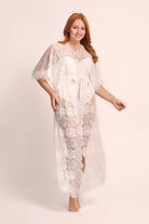 Crafted with the utmost attention to detail, the Kassiah Kimono Lace Robe features intricate lacework that dances gracefully across its fabric. This delicate lace is complemented by an opulent satin belt, adding a touch of luxury and sophistication to the ensemble. As you slip into this ivory lace bridal robe, you'll instantly feel like the embodiment of timeless beauty.