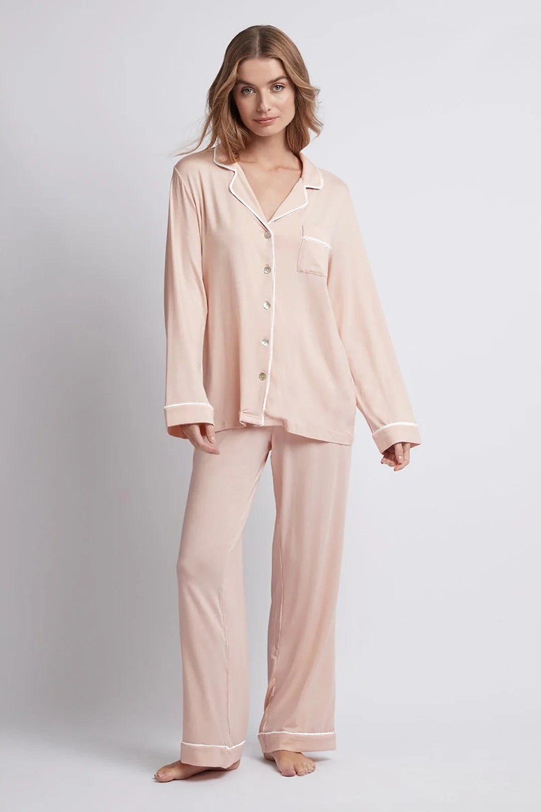 Petra Tencel™ Lounge Pyjama Set - Blush with White Piping