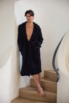 Searching for the perfect gift for him and her? Look no further! Our best-selling lush plush robe is now available in black. Crafted from the softest stretch plush material, Homebodii's Ultimate Luxe Robe is like being wrapped in a warm hug. With cuffed long sleeves, a self-tie belt, two patch pockets, and a hood for extra coziness, it's the ultimate way to stay snug this winter. Treat yourself or a loved one to the epitome of luxury with this exquisite robe from Homebodii.