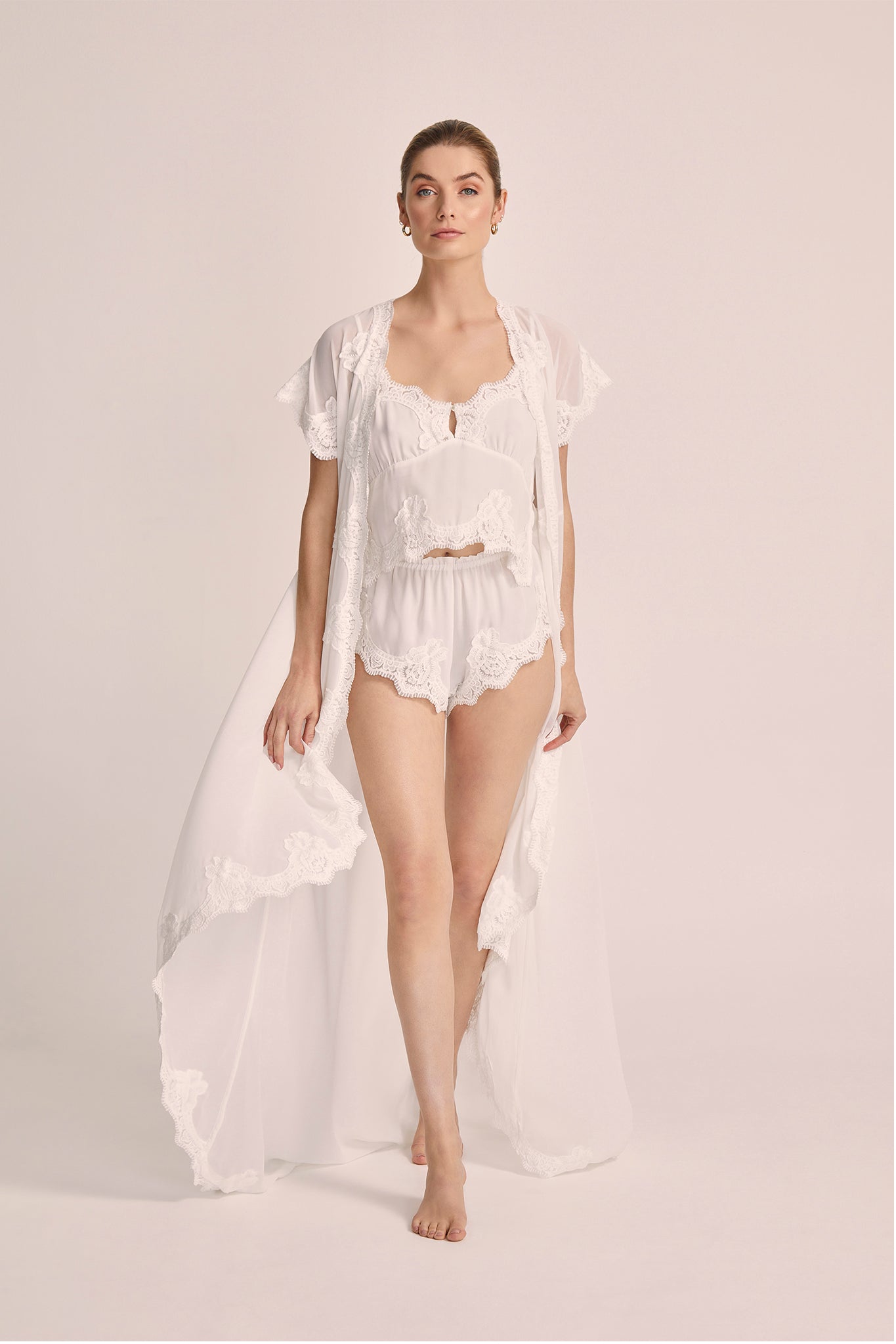 The matching lace pairs beautifully with our Farrah and Valentina robe, making it ideal for lounging or adding a touch of glamour to your bedtime routine.